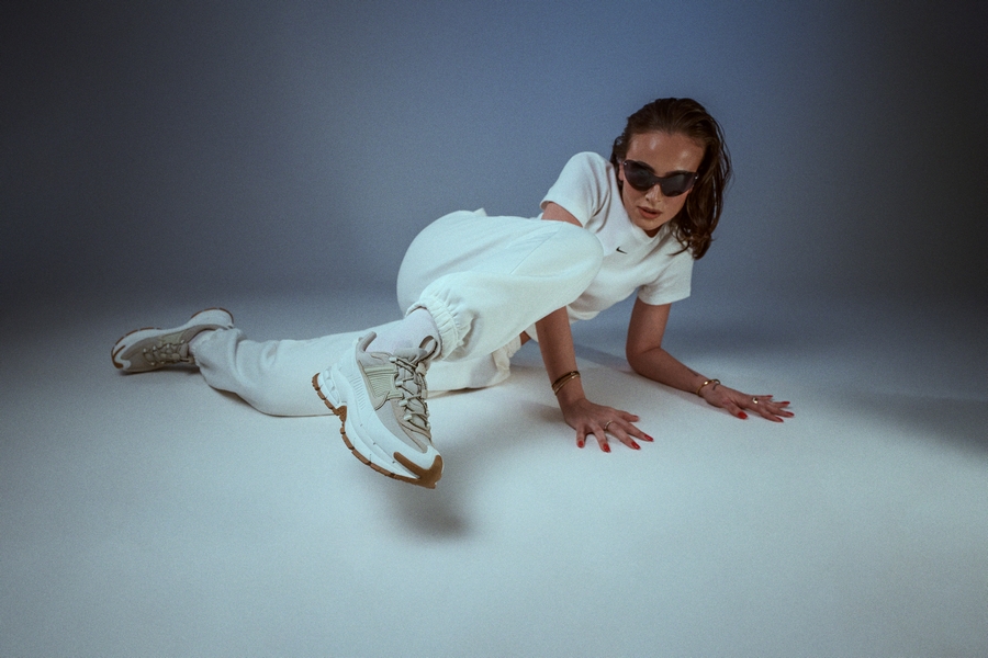 Studio nam je dao slobodu da se igramo pozama, svetlom i pokretom. Mali sto nije bio samo rekvizit, već kontrast — spoj radne atmosfere i modne energije. Tu NIKE ZOOM VOMERO ROAM pokazuju koliko su prilagodljive: od dinamičnog dana u pokretu do savršeno stilizovanog outfita, bez gubitka karaktera.